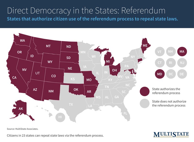 Currently a statewide total of 132887. In 26 states a statewide initiative andor referendum process is available to citizens. Two initiatives directly related to initiative and referendum laws were also filed in Missouri and South Dakota targeting the 2020 ballot.